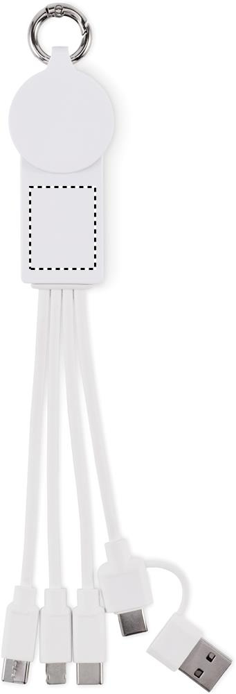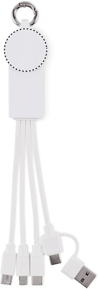 Schlüsselring mit Ladekabel. Eingang: 2-in-1 Typ-C & Typ-A. Ausgang: Aufladen der Uhr (Samsung® und Apple®), 2 x Typ-C und Micro-B (2 in 1 Pin). Kabel aus recyceltem TPE.