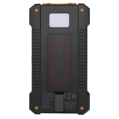 Produkte Nachhaltige Werbeartikel Altair 10 W 5000 mAh robuste Solar Powerbank aus recyceltem Kunststoff mit integrierter Taschenlampe
