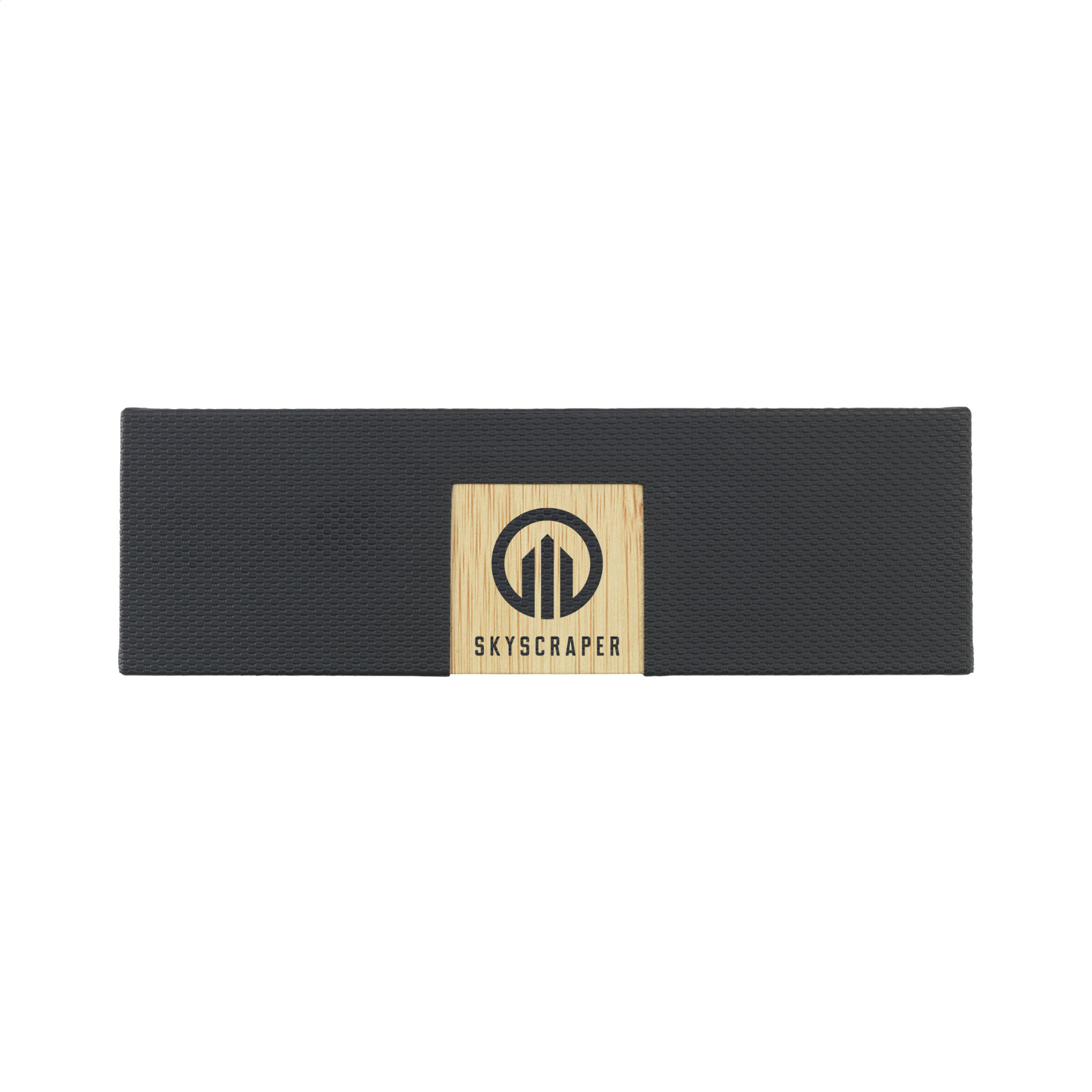Blauschreibender Metallkugelschreiber mit polierter, superglatter Chromoberfläche und Bambusgriff. Der Stift verfügt über ein Dreh-Klick-System. Präsentiert in einer schönen, passenden Box mit Bambusakzent. Ein unverwechselbares und luxuriöses Set. Jeder Artikel wird mit einer individuellen Krafthülle geliefert.