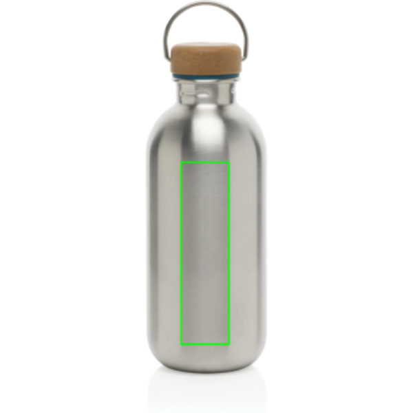 Eine leichte und kompakte 600ml-Flasche aus hochwertigem Edelstahl mit einem Deckel aus PP aus nachhaltiger Produktion. Edelstahl und PP-Deckel haben eine praktische Trageschlaufe. Nur Handwäsche