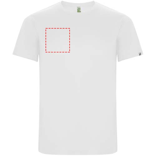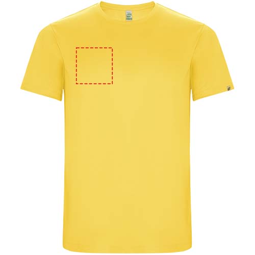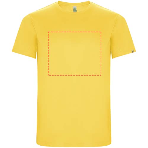 Funktions-T-Shirt aus recyceltem Polyester CONTROL DRY. Rundhalsausschnitt mit farblich abgesetzten Nähten. ECO-Logo-Etikett am Ärmel. Verpackung aus Recyclingmaterial. Herausnehmbares ECO-Etikett. Verpackung aus Recyclingmaterial. Technisches Gewebe. Das Modell ist 180 cm groß und trägt Größe M.