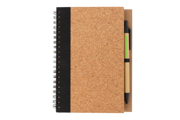 Kork Spiral-Notizbuch mit Stift, Schwarz