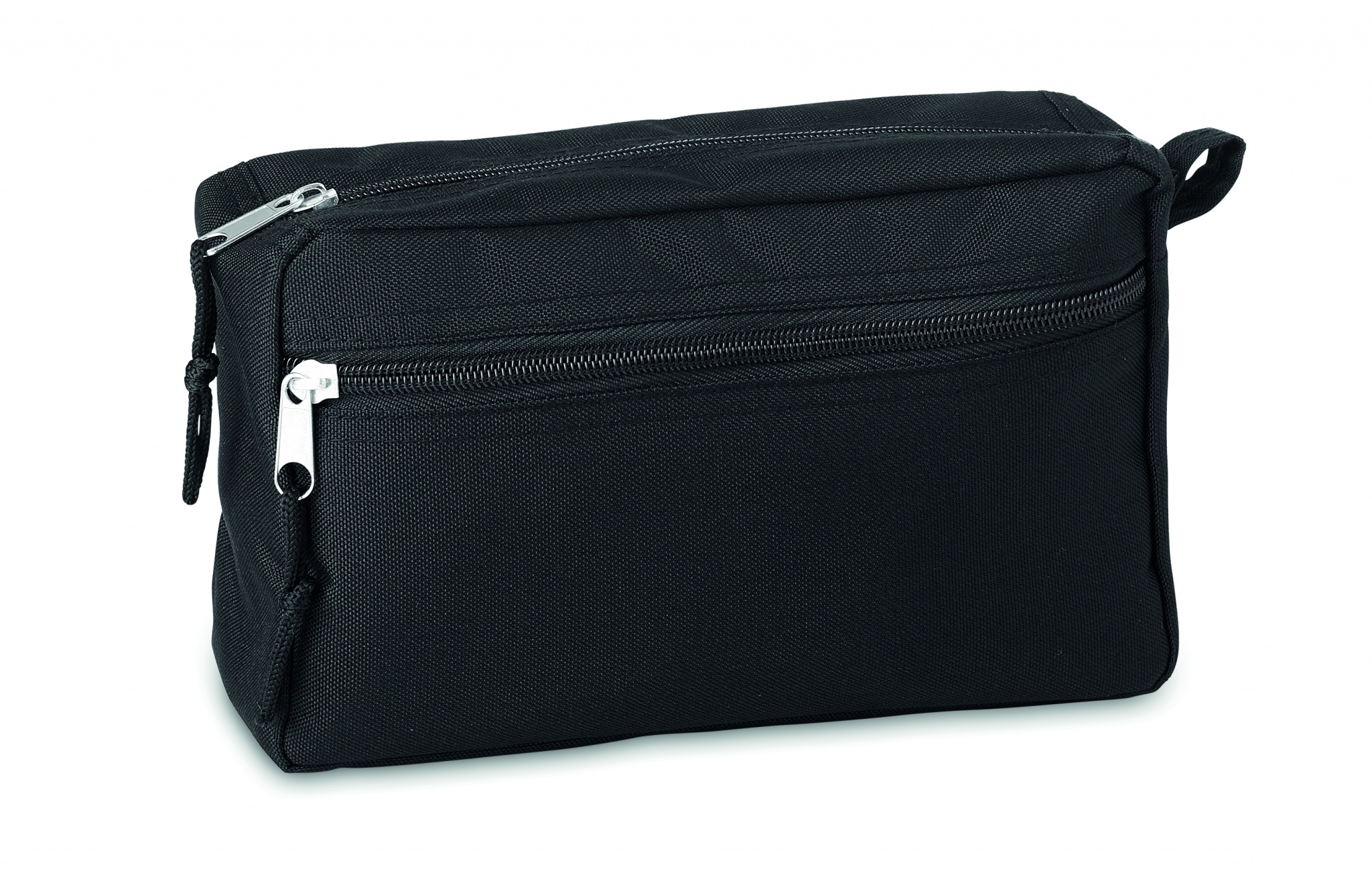 Kosmetiktasche mit Zweiwege-Reißverschluss. 600D RPET mit PU-Innenbeschichtung.