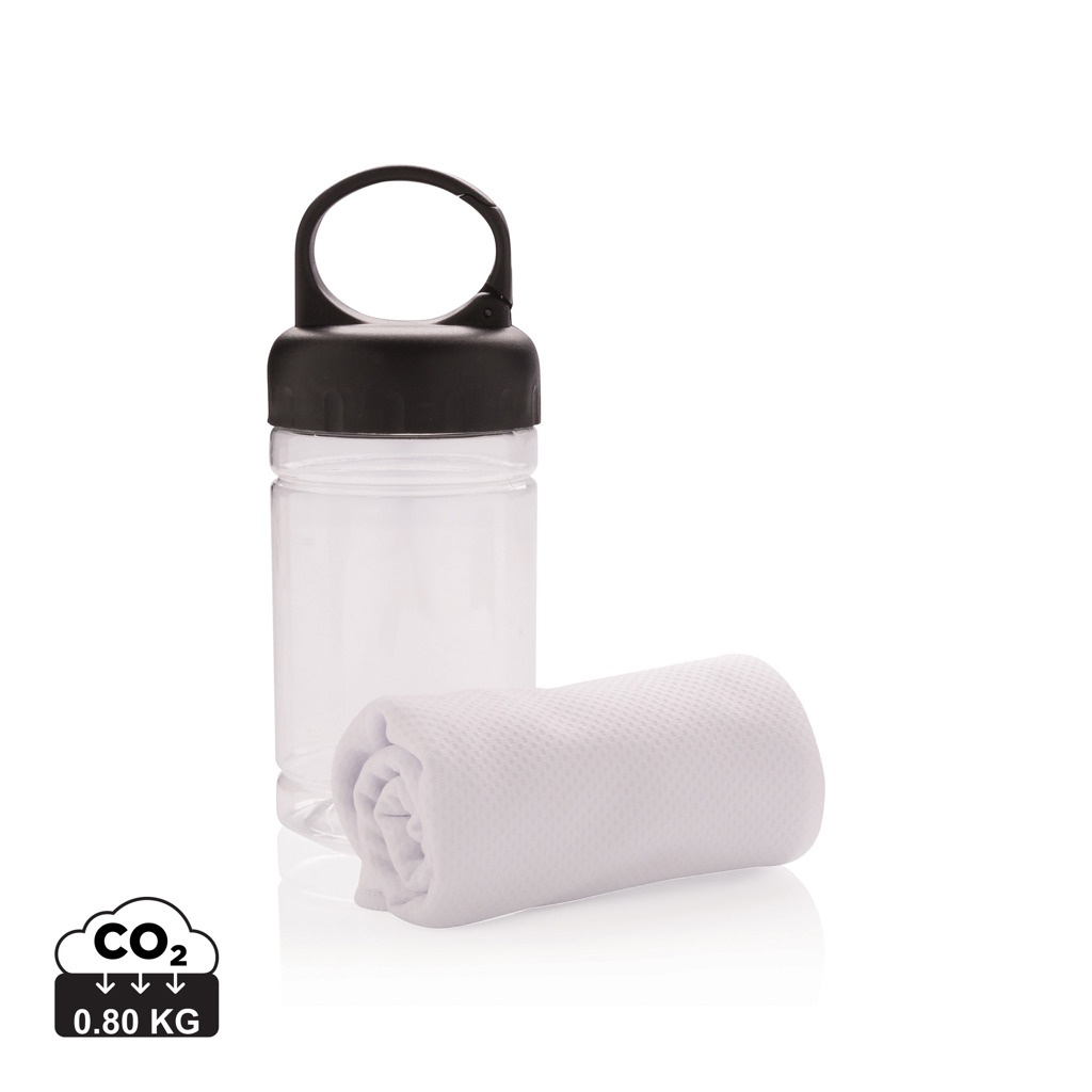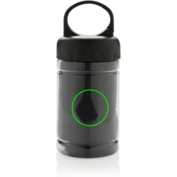 Mikrofaser Kühlhandtuch ( ca. 77x30cm) mit 98% Sun-Blocker-Funktion bis zu UV50+. Einfach etwas kühles Wasser zum Handtuch in die Dose geben und fertig ist die Erfrischung. Die Dose aus PP, der Deckel aus ABS und das ganze mit einem Karabiner, um sie bei allen Outdoor-Aktivitäten immer dabei zu haben.