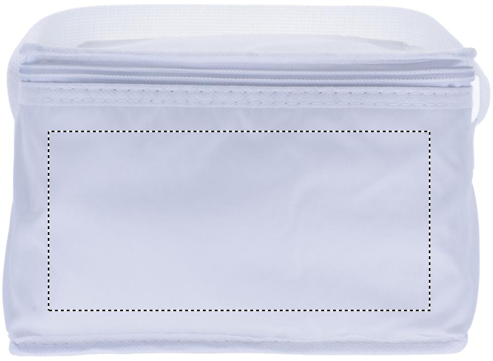 Kühltasche für 6 Dosen. Außenseite 200D Polyester. Mit weißen Absetzungen Non-Woven 80 g/m². Isoliermaterial: Mit Aluminiumfolie laminierter Schaumstoff. Füllmenge 3L.