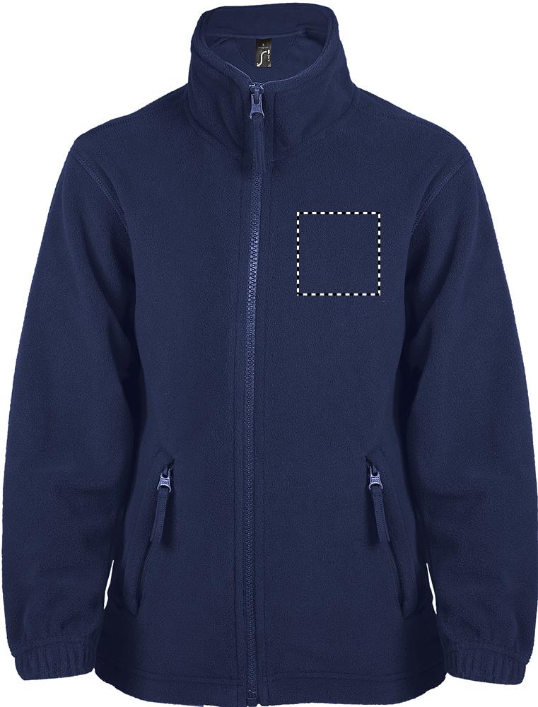 SOL'S NORTH Kinder Fleece Jacke aus Anti-Pilling-Material. Nackenband, Stehkragen, Reißverschluss, 2 Reißverschlusstaschen, elastische Ärmelbündchen, elastischer Kordelzug am Saum, verlängertes Rückenteil. Material: 300g/m², 100% Polyester. Größen: 4 Jahre: 96-104cm (L), 6 Jahre: 106-116cm (XL), 8 Jahre: 118-128cm (XXL), 10 Jahre: 130-140cm (3XL), 12 Jahre: 142-152cm (4XL), 14 Jahre: 156-164 cm (5XL)