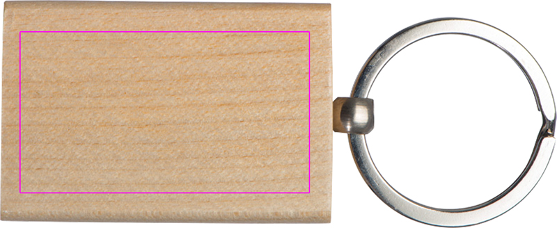 Rechteckiger Schlüsselanhänger aus Buchenholz mit Schlüsselring. Durch die Lasergravur kommt Ihr Logo perfekt zur Geltung.