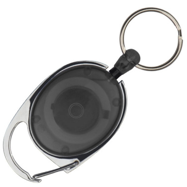 Schlüsselanhänger mit kleinem Karabinerhaken, Gürtelclip und herausziehbarem Schlüsselring. Ihre Werbung wird auf die farbige Kunststofffläche gedruckt.