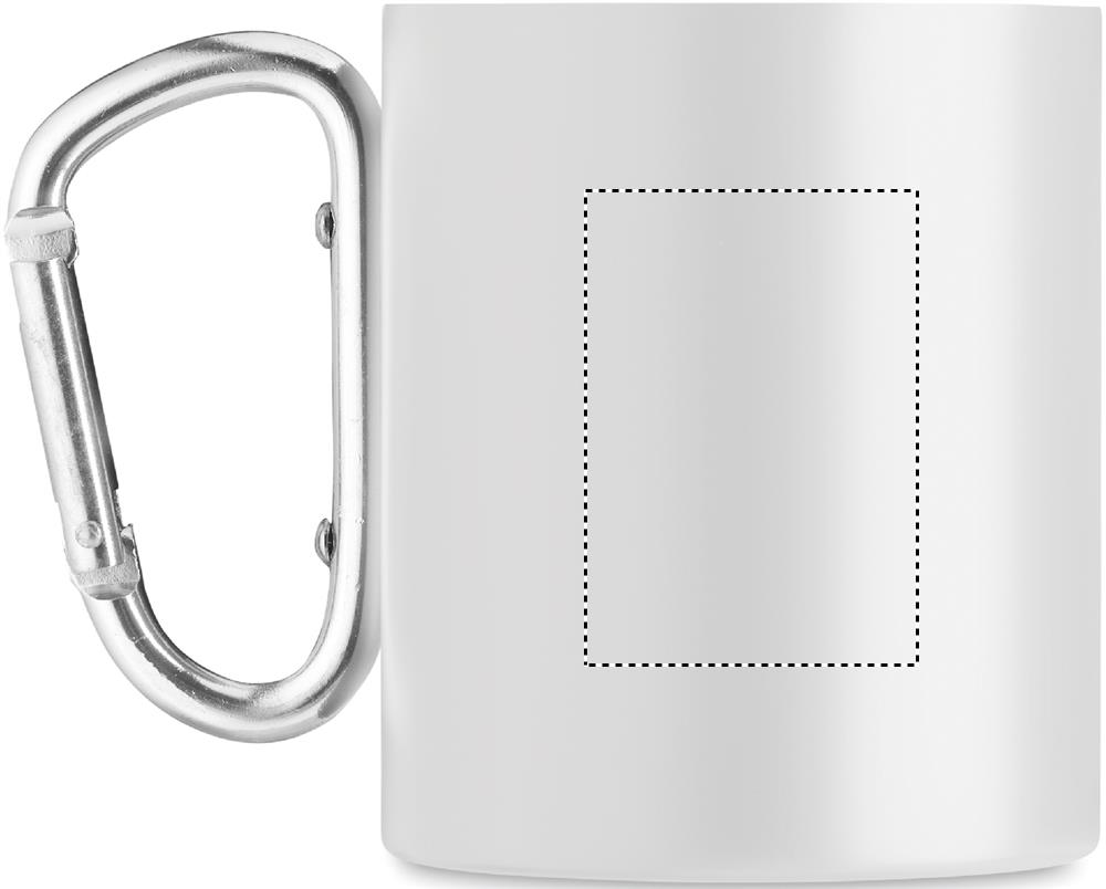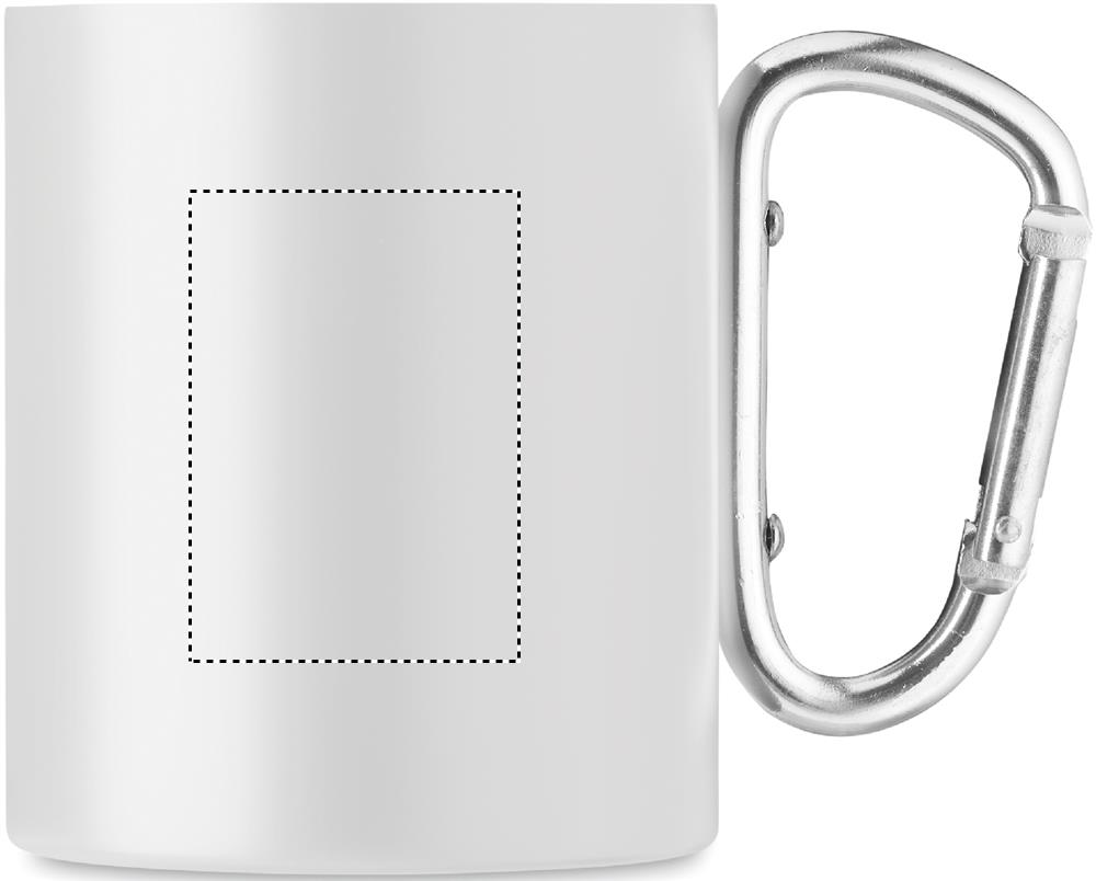 Doppelwandiger Becher aus Edelstahl im Vintage-Look. Spezielle Beschichtung für Sublimationsdruck. Henkel mit Karabiner. Füllmenge: 300 ml. Der Karabiner ist NICHT als Sicherung beim Klettern geeignet.