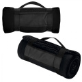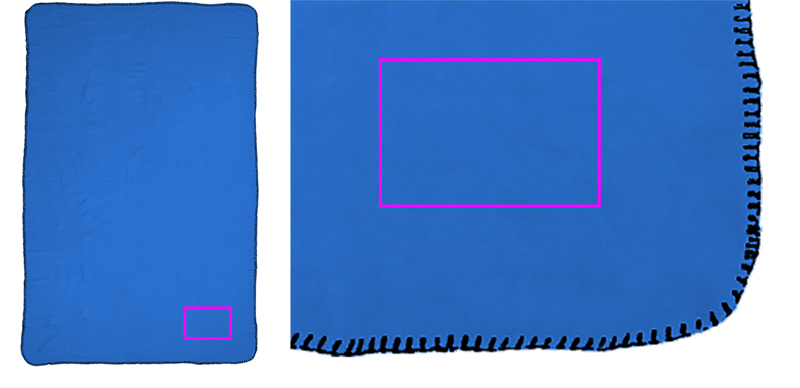 Snugly! This fluffy fleece blanket with carrying strap is ideal for getting cozy at home, or keep it in the car, as it is ideal for a picnic, camping, etc. Please check size when buying the blanket. We will print your logo onto the black surface between the straps.