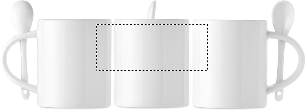 Ceramic mug and spoon with special coating for sublimation print. Spoon is stored in the handle. Capacity: 300 ml.
