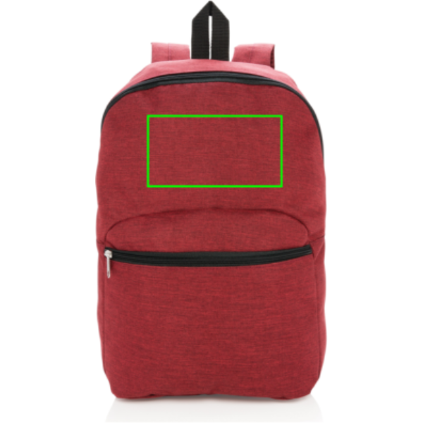 Compact and lightweight standard 600D two tone polyester backpack for everyday journeys. With an easy access front zippered pocket it’s your ideal travel companion.