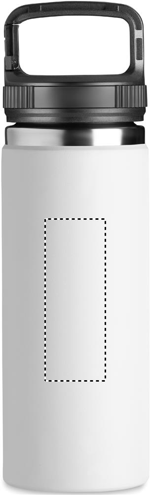Double wall stainless steel vacuum insulated bottle with hook hanger on lid. Capacity : 500 ml.