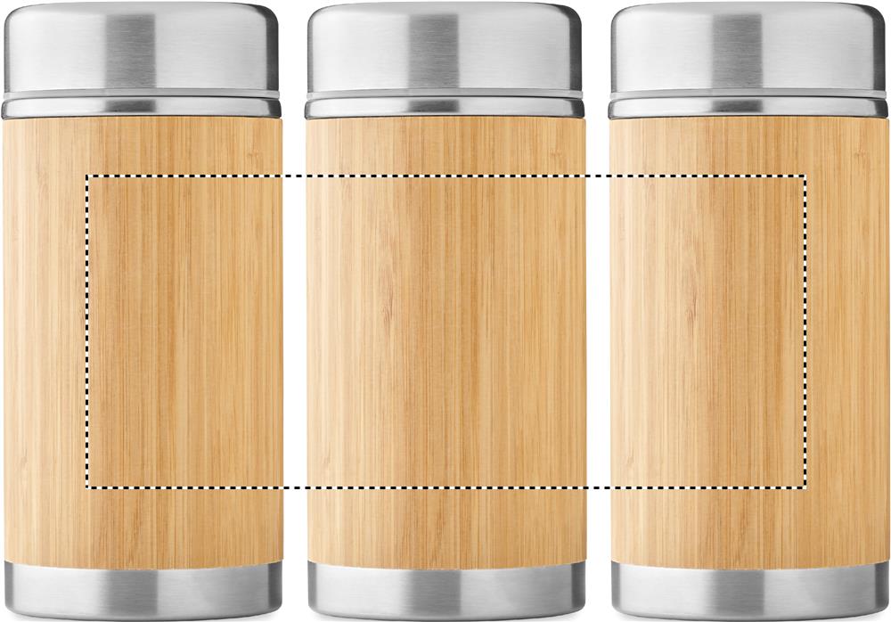 Double wall stainless steel insulated food jar with a screw top in bamboo finish. Capacity: 600 ml. Bamboo is a natural product, there may be slight variations in colour and size per item, which can affect the final decoration outcome.