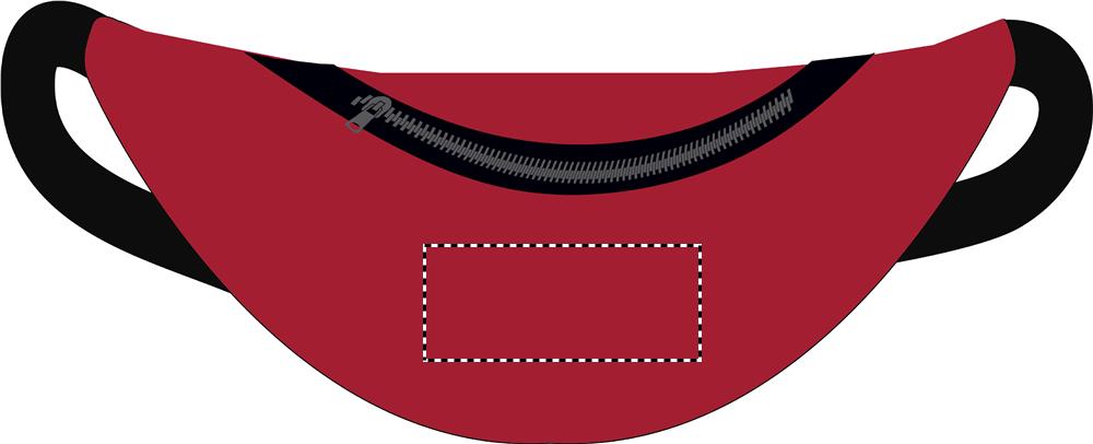 Fanny bag in 210D polyester with zippered main compartment and adjustable waist strap.