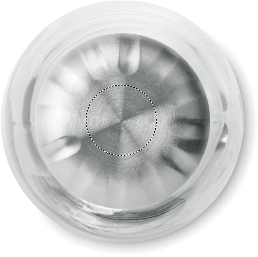 Glass drinking bottle with stainless steel lid. Capacity: 650 ml. Not suitable for carbonated drinks. Leak free.