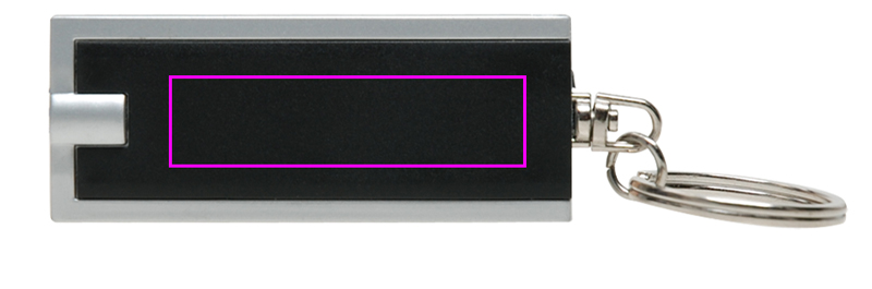 Flat and rectangular key fob in a modern design and LED light inside. The key ring is made of metal. 2 batteries are included. We will print your logo on the opposite side of the button.