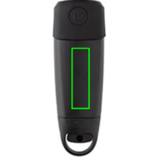 Extra bright torch with crank made with RCS certified recycled ABS plastic. Total recycled content: 30% based total item weight. RCS certification ensures a completely certified supply chain of the recycled materials. The torch uses a re-chargeable A-grade 620 mah lithium battery so no need to replace the batteries. Simply re-charge via your USB socket. 120 lumen LED light. With type C port for re-charging. Operating time on one charge: 2 hours. Crank can be used to add energy in case of emergency.