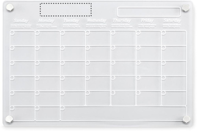 Magnetic acrylic monthly planner in A4 size with 3 erasable magnetic markers (black, red and white). Includes screws for mounting.