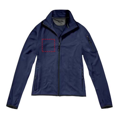The Mani women's performance full zip fleece jacket – where style meets functionality. Its 4-way stretch fabric ensures unrestricted movement, complemented by thumb holes and reflective details for versatility and visibility. The inner storm flap with chin guard shields against elements. This jacket features elasticated binding on the bottom and sleeves, offering a comfortable and slightly tight fit that adds protection against chilly winds. Made from a 245 g/m² knit of polyester blended with elastane with cool fit finish, this jacket balances comfort and durability. A cool fit finish brings numerous benefits related to moisture management, comfort, temperature regulation, and overall performance. Elevate your activewear with the Mani full zip fleece jacket. This jacket is designed with a fitted shape for a feminine look.