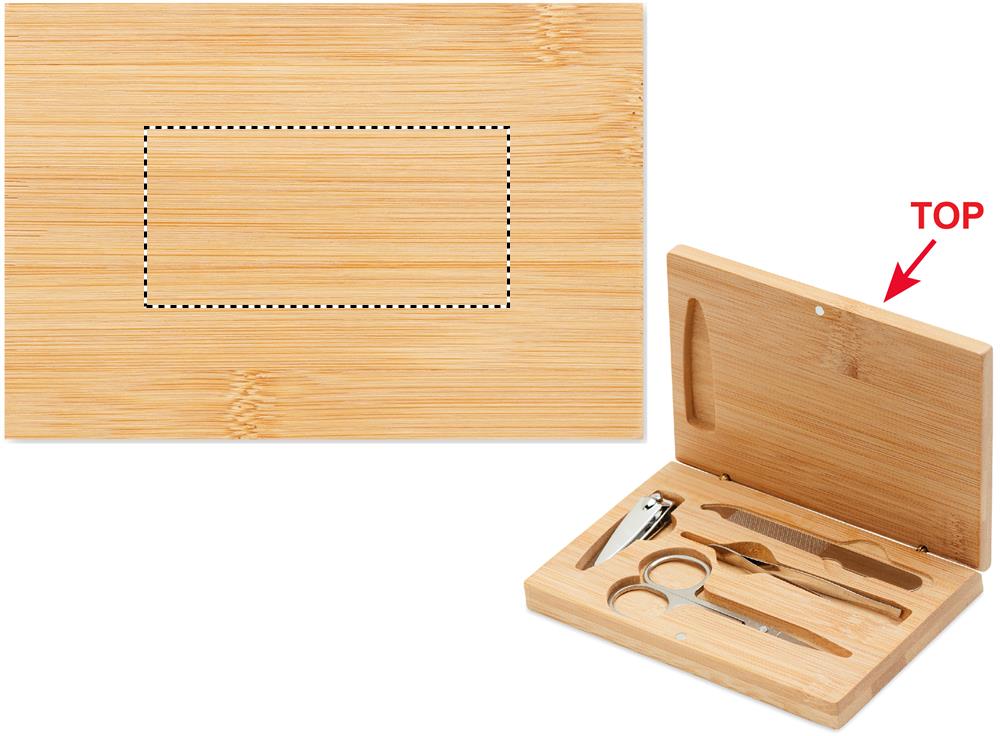 4 piece stainless steel manicure set in a bamboo case with magnetic closure. Including: curved nail scissors, nail clippers, nail file and tweezers. Bamboo is a natural product, there may be slight variations in colour and size per item, which can affect the final decoration outcome.