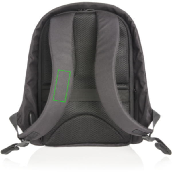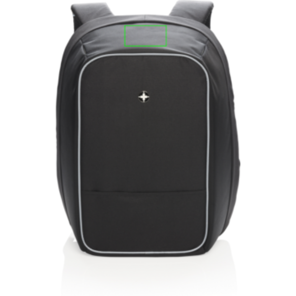 This Swiss Peak anti-theft 15.6” laptop backpack is a stylish option for your every day commute. The hidden zipper closures and secret pockets will keep all your belongings safe. Connect your powerbank easily to the integrated USB charging port and charge your phone or tablet on the go. Stay visible at night thanks to the reflective safety strips. With luggage strap. With AWARE™ tracer that validates the genuine use of recycled materials. Each bag has reused 24.4 0.5L PET bottles. 2% of proceeds of each AWARE™ product sold will be donated to Water.org. PVC free. Registered design®