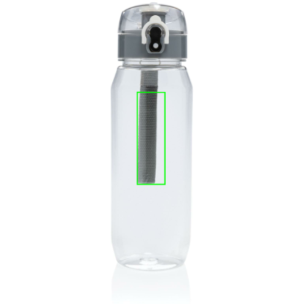This RCS RPET water bottle is leakproof and features a lockable and one hand operation lid. It also features a handle for easy carrying. The body of the bottle is made from 100% RCS certified RPET. RCS certification ensures a completely certified supply chain of the recycled materials. Hand wash only. This product is for cold drinks only. Total recycled content: 73% based on total item weight. BPA free. Capacity 800ml. Including FSC®-certified kraft gift packaging.