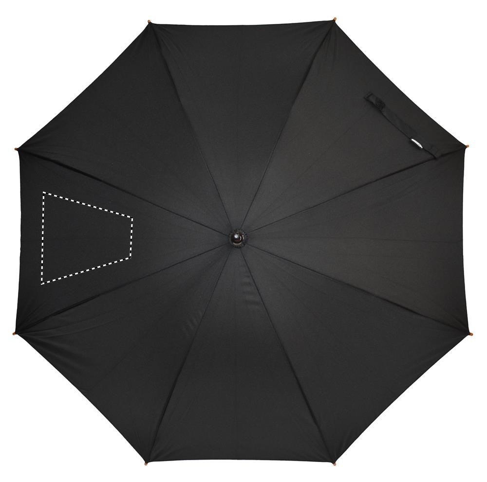 23-tolline automaatselt avatav vihmavari 190T RPET-pongee puidust varre, otste ja ülaosaga. Musta värvi metallist ribid. Kumer naturaalse viimistlusega puidust käepide. Käsitsi sulgemine.