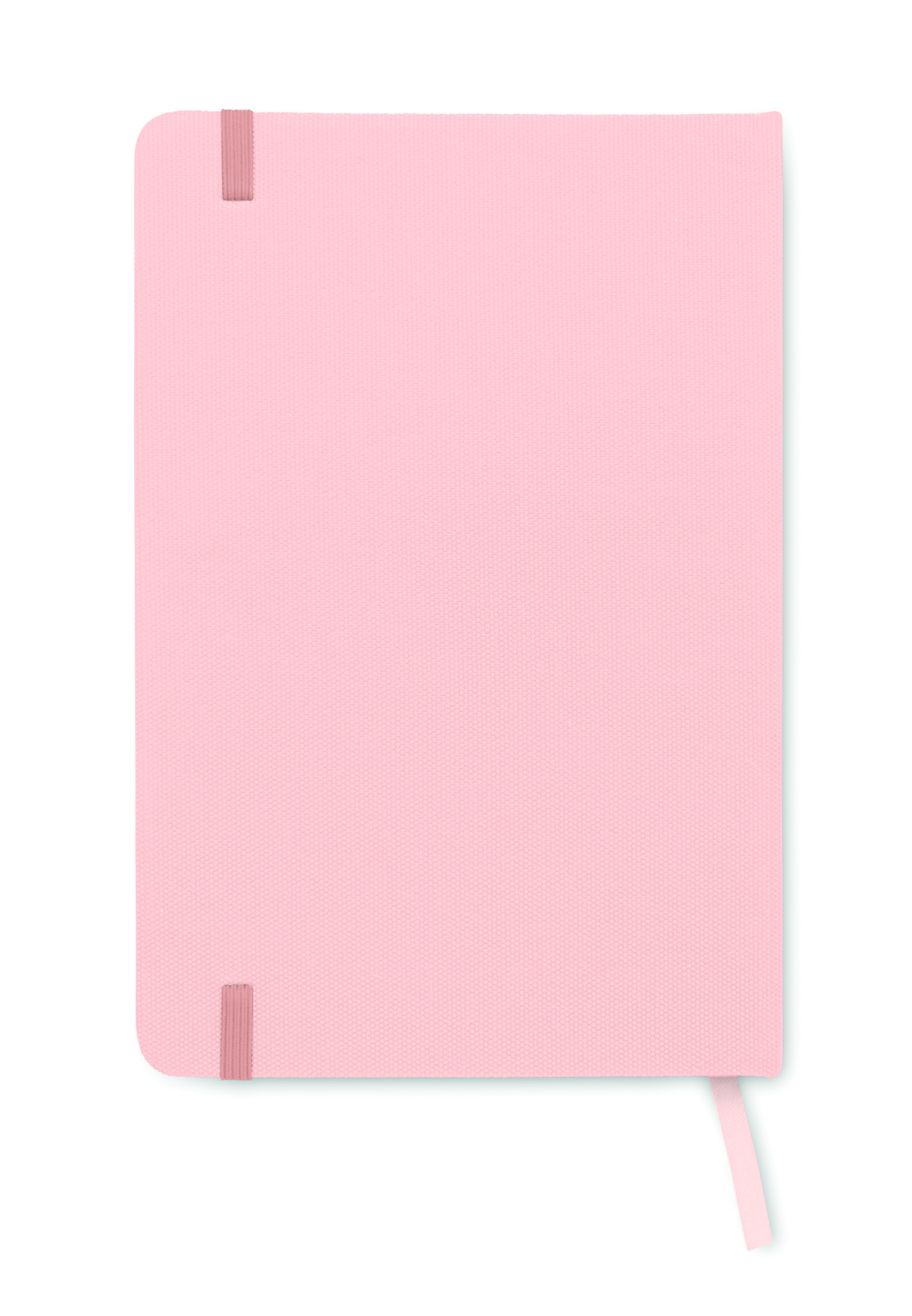 A5 märkmik kõva 600D RPET kaanega. Casebound. 160 joonega taaskasutatud paberilehte (80 lehte). Kokkusobiv elastne sulgemisrihm ja paelaga järjehoidja.