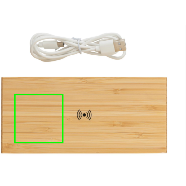 Logo trade reklaamtoote pilt: Bambusest äratuskell 5W juhtmevaba laadijaga