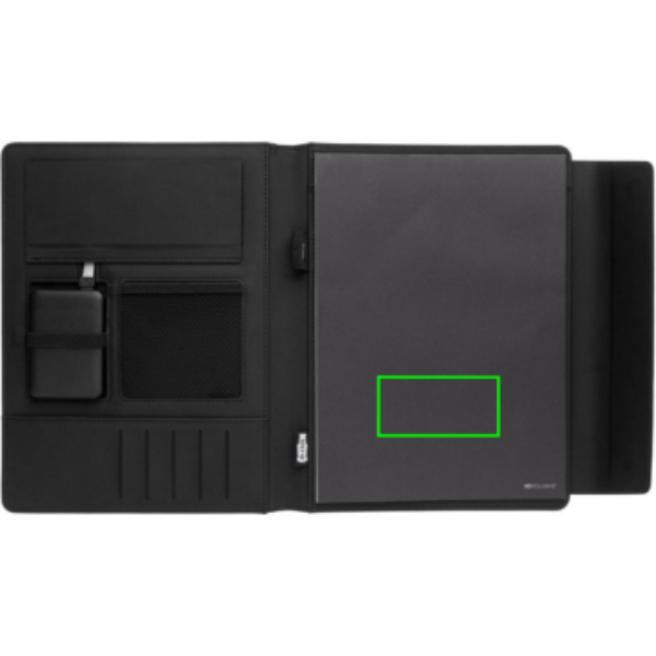Olge organiseeritud ja tõhus selle kauni A5 juhtmevaba portfelliga! See pakub juhtmevaba laadimise võimalust, nii et olete alati ühenduses. Kaasasolevat välist toitepanka saab kasutada ka iseseisvalt. Sellel elegantsel portfellil on sisseehitatud juhtmevaba laadimistelefoni alus, elastne pliiatsiaas ja täiendavad võrktaskud. Märkmikus on 64 lehte/128 lehekülge 70 gsm kreemikat joonelist paberit. Valmistatud polüestrist ja PU-st. Sisend: 5V/2A; Väljund: 5V/2A. Juhtmeta sisend 5V/2A, väljund 5V/1A. Saadaval täisvärvilises kinkekarbis.