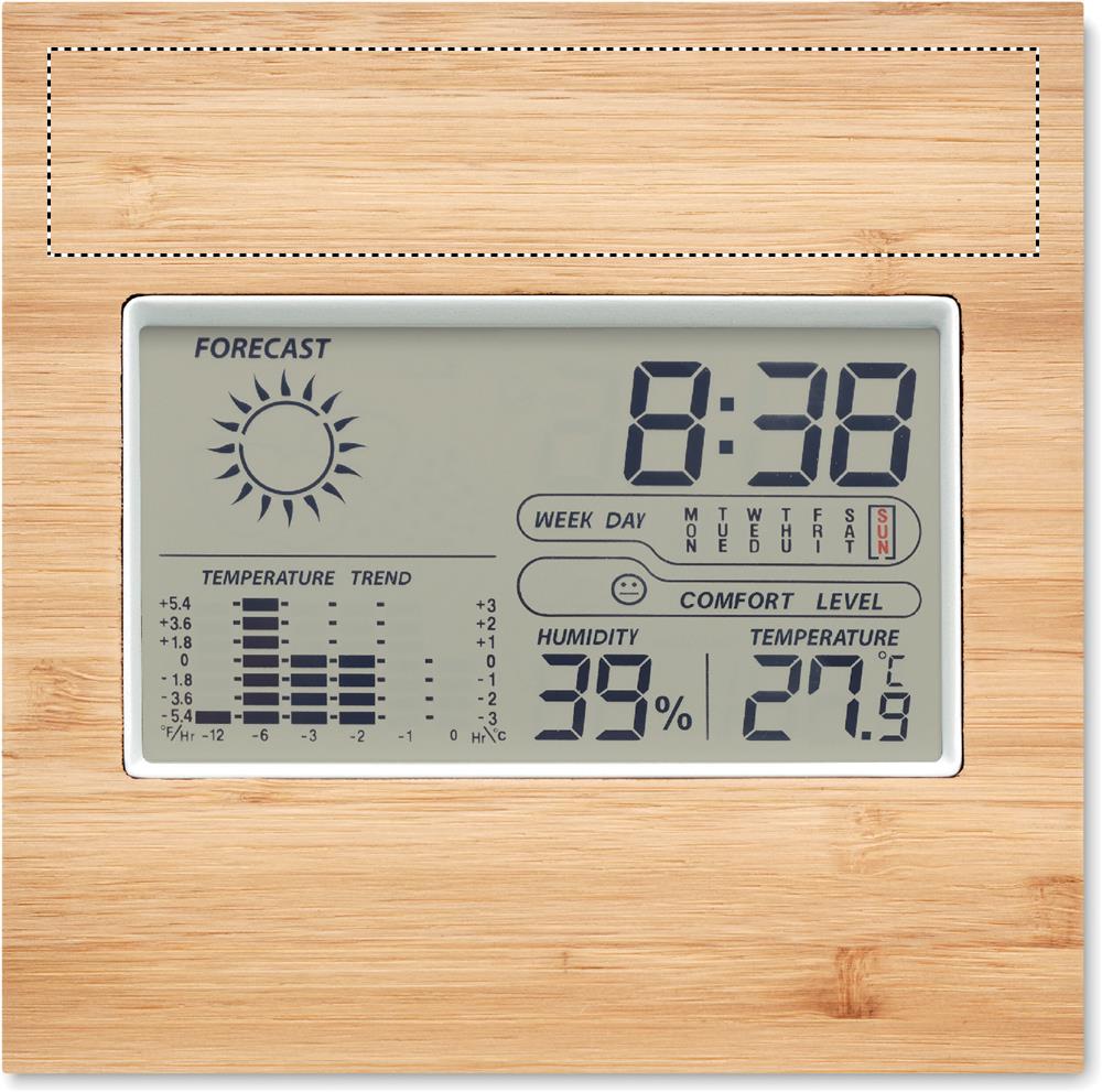 Ilmajaam bambusest esiküljega. Sisaldab kella, temperatuuri, niiskuse näitu ja kalendrit. 2 AAA patareid ei kuulu komplekti. Bambus on looduslik toode, ühe eseme värvis ja suuruses võib esineda väikesi erinevusi, mis võivad mõjutada lõppviimistlust.