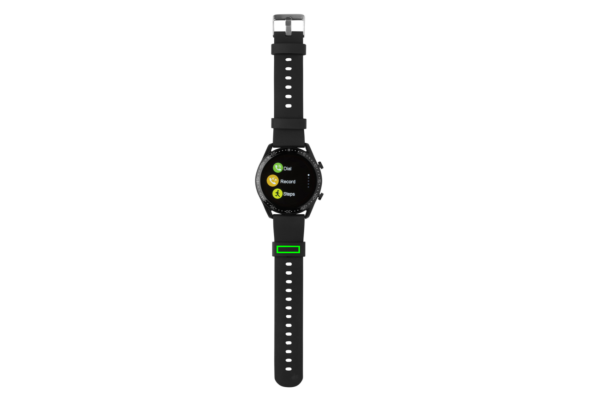 Moodne elustiilikell 1,28-tollise ümmarguse puutetundliku ekraaniga, et jälgida teie tegevusi kogu päeva jooksul. Integreeritud mikrofoniga telefonikõnedele vastamiseks kellas. Valmistatud RCS (Recycled Claim Standard) sertifitseeritud ringlussevõetud TPU käepaela ja metallraamiga. Taaskasutatud kogusisaldus: 22% eseme kogukaalust. RCS-sertifikaat tagab taaskasutatud materjalide täielikult sertifitseeritud tarneahela. Funktsioonide hulka kuuluvad: sammude arv, kalorid, distants, mitme spordiala jälgimine, äratuskell, pulsi jälgimine, vererõhu jälgimine, unemonitor, kalendrivärskendused, helistamine ja kõnede vastuvõtmine, märguanded: SMS, Facebook, Skype, WhatsApp, Twitter jne. Ühildub Android 4.4 ja IOS 8.0 ja uuemate versioonidega. BT 4.0. Ooteaeg 15 päeva ja tööaeg kuni 5 päeva. Kaasas klambrilaadija kella laadimiseks. Pakitud FSC® mix kraft pakendisse. Toode ja tarvikud 100% PVC-vaba.