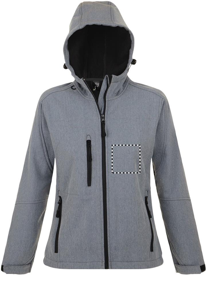 SOL'S REPLAY WOMEN, naiste kapuutsiga softshell, 94% polüester - 6% elastaan, fliisvooder: 100% polüester, 3 kihti, 8000 mm veekindel ja hingav membraan softshell 340, 2 tõmblukuga küljetaskut ja 1 lukuga rinnatasku, reguleeritav waist rõngas isehaarduva kinnitusega mansetid, nööriga kapuuts. Suuruste sobivuse kohta vaadake toote dokumentatsiooni jaotises olevat suurustabelit.