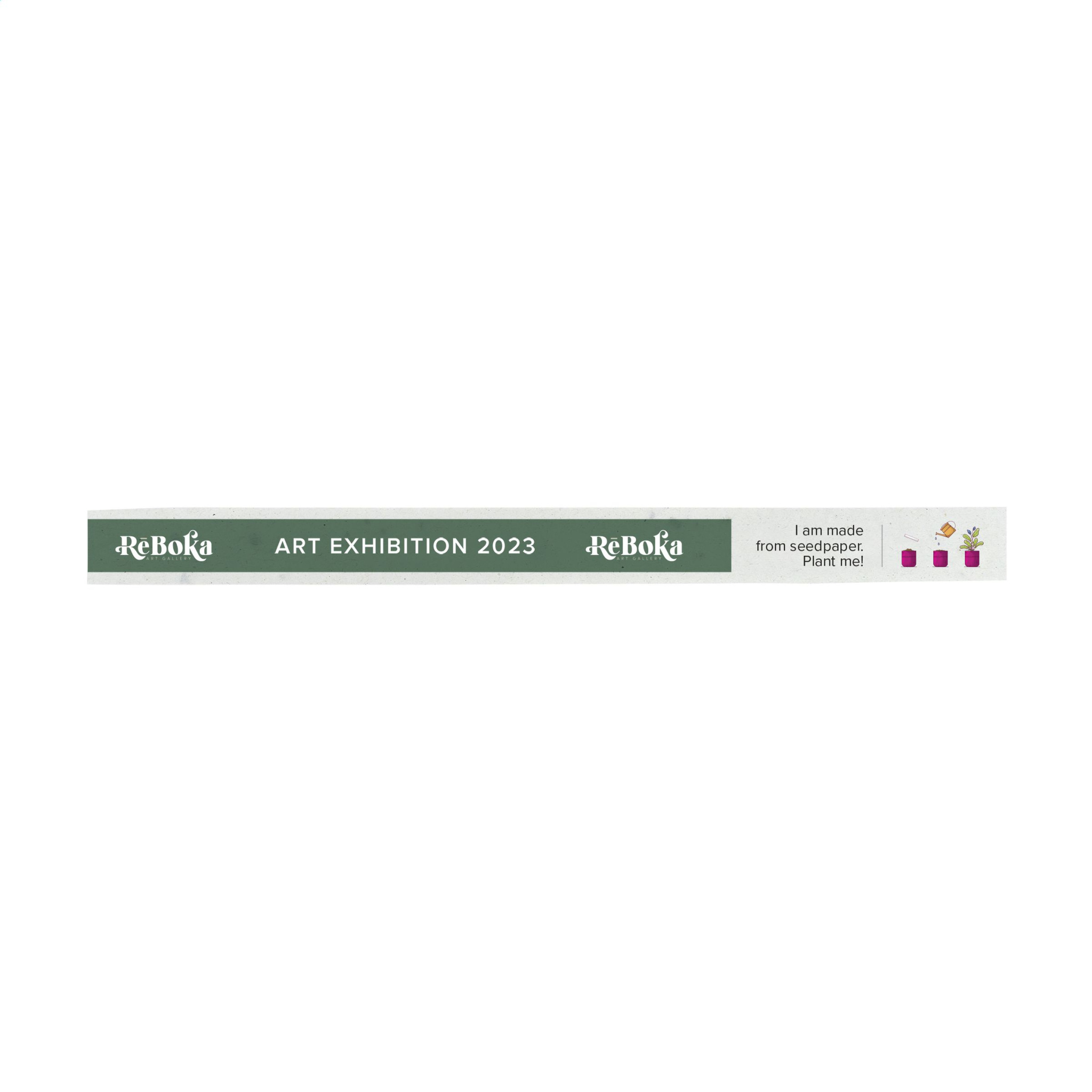 Vau! 100% taaskasutatud ja taaskasutatavast seemnepaberist valmistatud festivalibänd, mille saab pärast kasutamist istutada lilli kasvatama. Kleeplindiga sulguriga. Kaasa arvatud ühele küljele täisvärviline jäljend. Ideaalne lahendus üritustele ja festivalidele juurdepääsu kontrollimiseks. Reklaamiline ja funktsionaalne. Lilleseemnete segu liimitakse kahe kihi ümbertöödeldud vanapaberi vahele (40 g/m²). Kui üritus on lõppenud, saate biolaguneva rihma istutada ja vaadata, kuidas seemned õitsevad. Põldlillesegu koosneb: paiseleht (karikakar) – loorirohi – snapdragon – kõverõis – hõbekilp – mehhiko – petuunia – salvia – suveasalea – jäälill. Keskkonnasõbralik kingitus, mis aitab kaasa ka terve mesilaspopulatsiooni säilimisele.