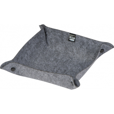 Taaskasutatud vildist hoiukauss. Tänu praktilistele nööpkinnitustele saab kaussi kiiresti hoiustada või tasaseks seada. Kokkupandud kausi mõõdud 15 x 15 cm.