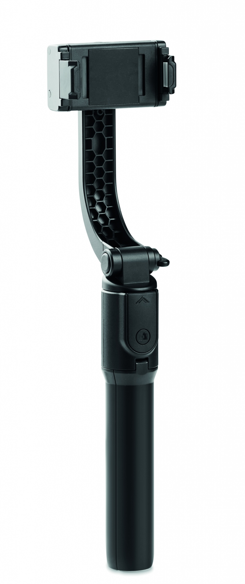 Teleskooppinen älypuhelimen pidike ja jalustatoiminnolla varustettu vakautin. 1-akselinen kardaani, 400 mAh LiB-akku.