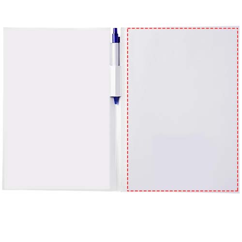 Essential-konferenssipakkaus, jossa A4-koon muistikirja ja kynä, Valkoinen/sininen