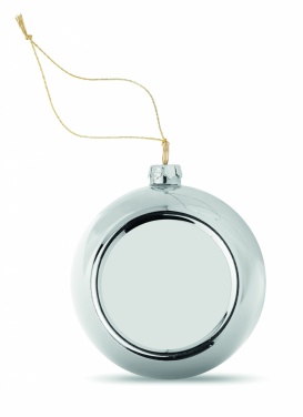 Kiiltävä PP joulupallo, sisältää levyn sublimaatiopainatukseen. Halkaisija 6 cm.