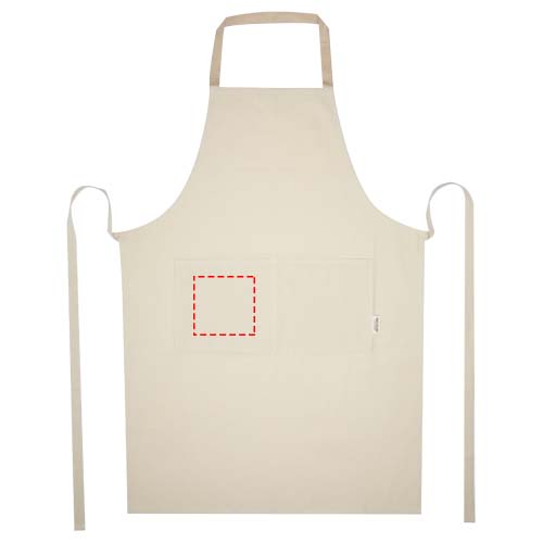 Nia esiliina on valmistettu 100-prosenttisesti GRS-sertifioidusta 200 g/m²:n kierrätetystä puuvillasta. Esiliina on luonnollisen puuvillan värinen, siinä on kontrastivärinen niskalenkki ja se suojaa vaatteita ruoanlaiton aikana. Käytännöllisessä ja tyylikkäässä Nia esiliinassa on kaksi vierekkäistä taskua, joiden yhdistetty koko on 45 x 20 cm, sekä 1 metrin pituiset taakse sidottavat kiinnitysnauhat.