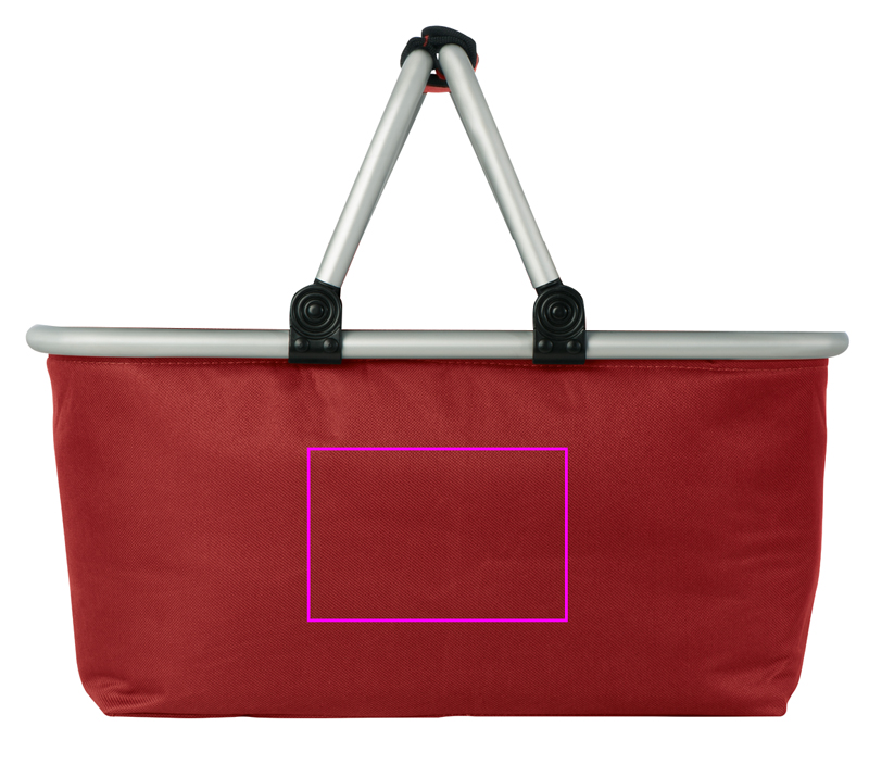Ostoskori alumiinirungolla eri väreissä tekee ostoksista helppoa. Painamme logosi yhdelle puolelle,