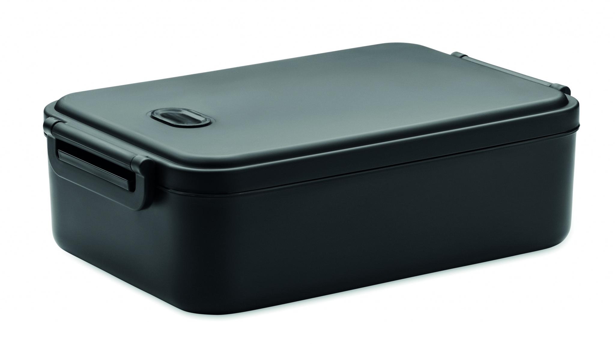Suuri kierrätetystä PP-lounasrasia, jossa ilmatiivis kansi, silikoniventtiili ja kaksi sivusuljinta. Tilavuus: 2200 ml.