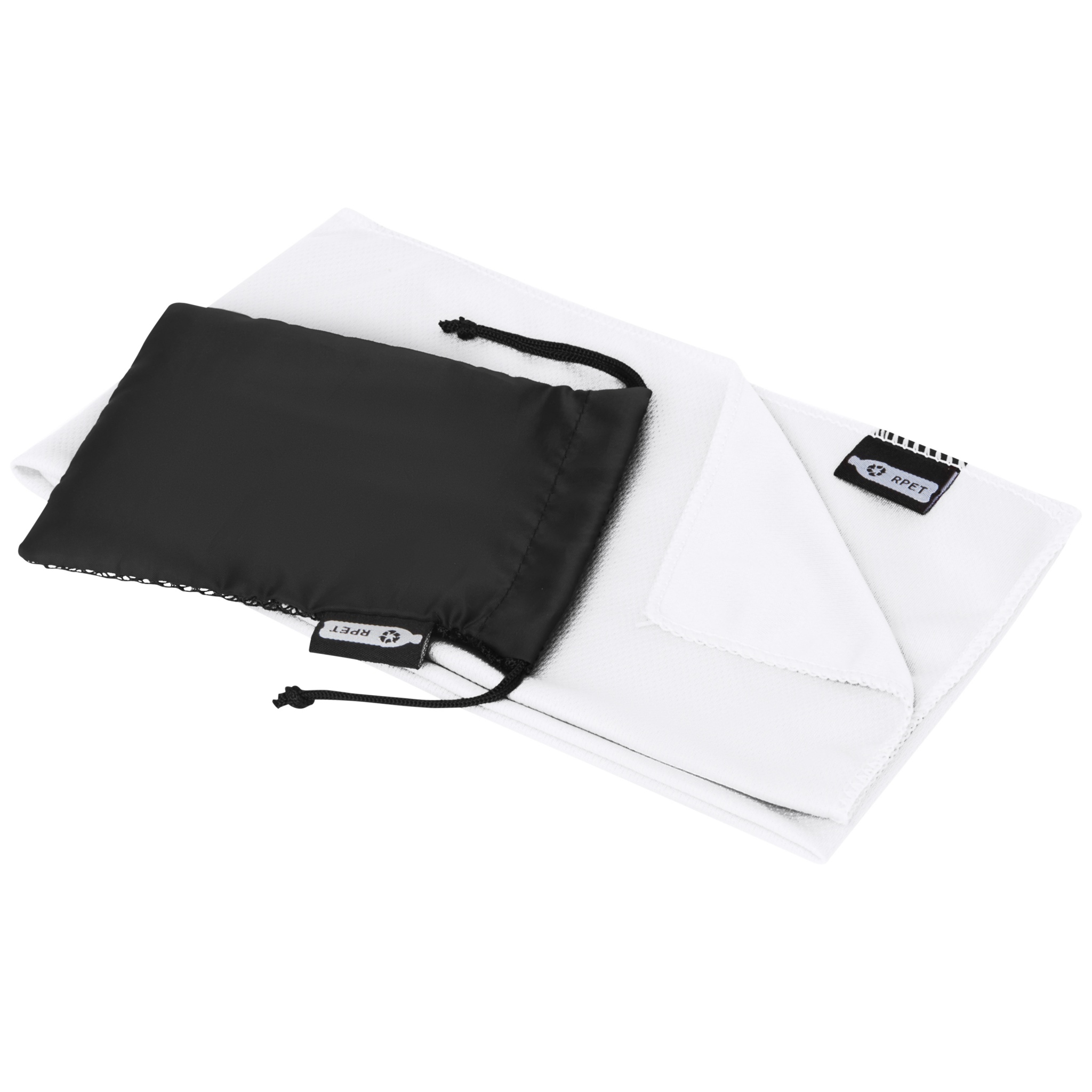 Imee kosteuden tehokkaasti ja kuivuu nopeasti: pestävä urheilupyyhe, joka on valmistettu kierrätetystä RPET-materiaalista. Toimitetaan pienessä, suljettavassa, kierrätetystä RPET-materiaalista valmistetussa pussissa kuljetusta varten. Saatavilla 5 raikasta väriä. Pussissa on suuri logomerkintäalue (koko 15 x 11,5 cm). Myös pyyhe voidaan merkitä logomerkinnällä (koko 80 x 30 cm).