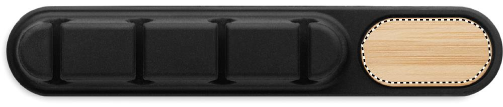 Silikoninen kaapelijärjestäjä luonnonbambuyksityiskohdilla. Kompakti soikea muotoilu pitää kaapelit siisteinä ja turvassa.