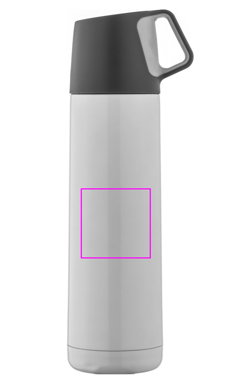 Ruostumattomasta teräksestä valmistettu tyhjiöpullo (500 ml) täydellisellä juomamukilla. Logosi laserkaiverretaan pulloon.