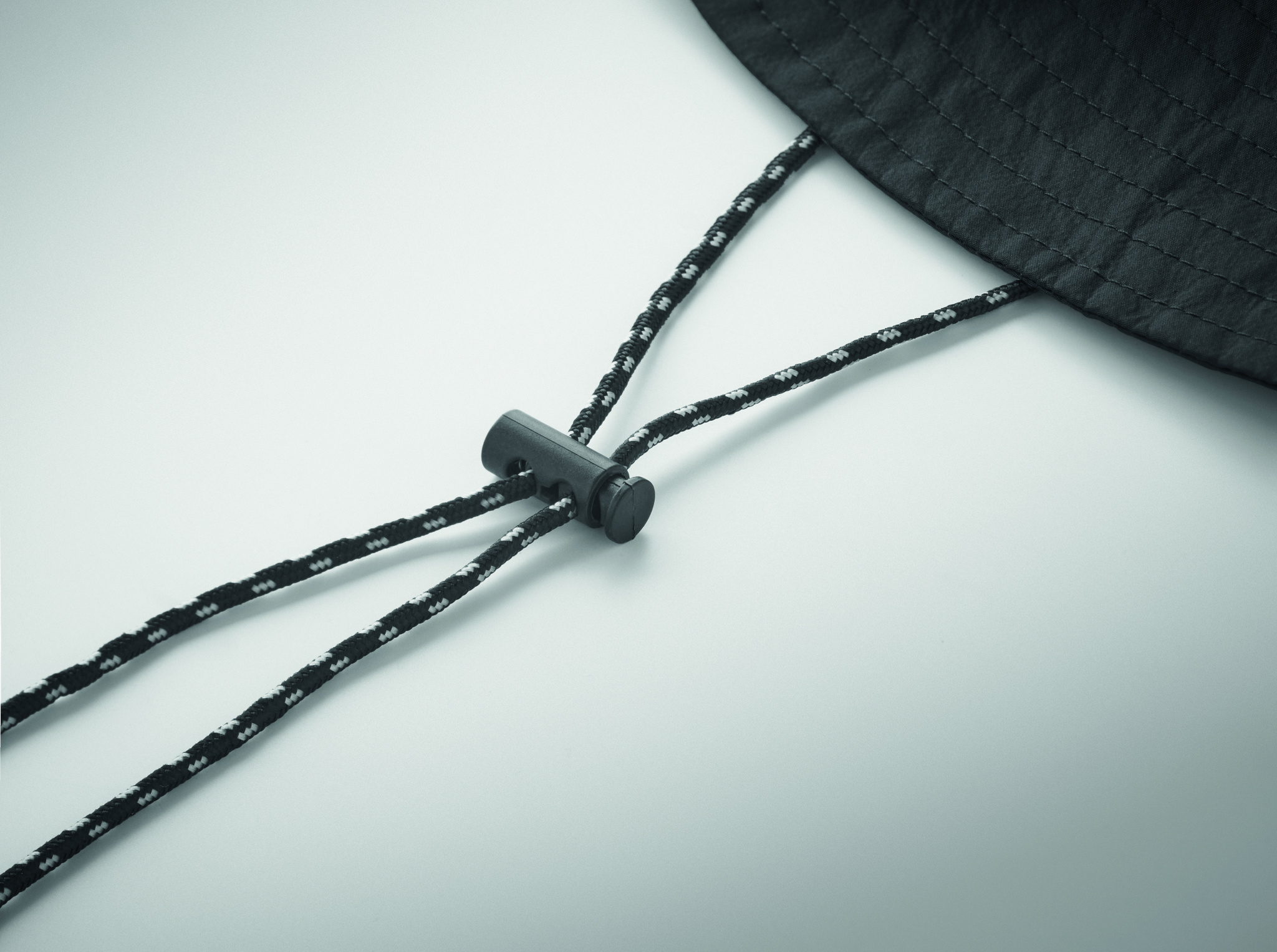 Vettähylkivä kalastajanhattu polyesteristä, mukana oma säilytyspussi ABS-karabiinilla. 64 g/m².