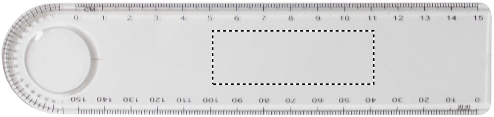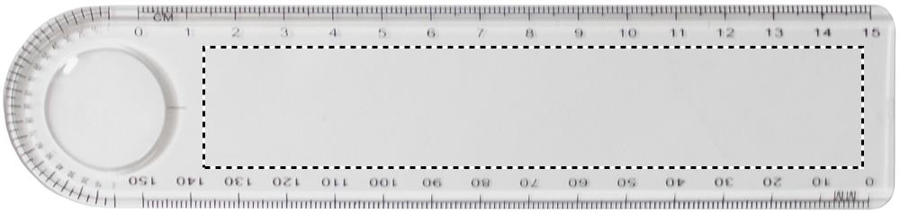 15 sentin muovi viivain, suurennuslasilla ja astelevyllä.