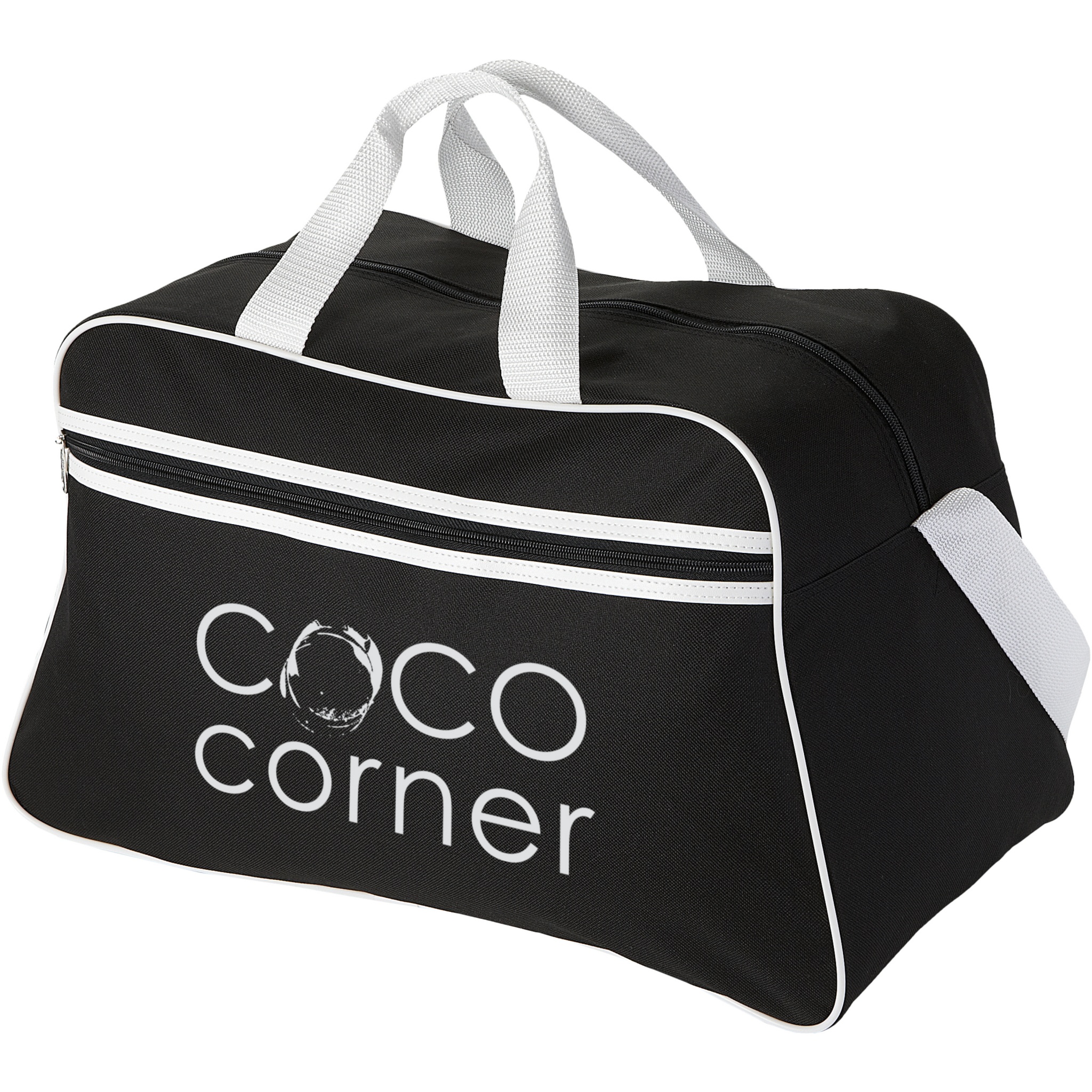 Sportinis krepšys su užtrauktuku užsegamu pagrindiniu skyriumi ir priekine kišene su užtrauktuku.