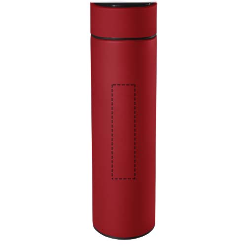 Dvisienis 500 ml izoliuotas nerūdijančio plieno butelis su antibakteriniu apdorojimu ir temperatūros jutikliu. „Touch & Light“ sistemos dėka gėrimo temperatūra rodoma ant butelio kamštelio (Celsijaus). Tinka tiek karštiems, tiek šaltiems gėrimams. Pristatoma cilindrinėje dovanų dėžutėje, pagamintoje iš perdirbto popieriaus. Dydis: Ø 47 x 225 mm. Baterija: CR 2450 (3V). Baterijos pakeisti negalima. Gali rodyti temperatūrą 20 000 kartų.