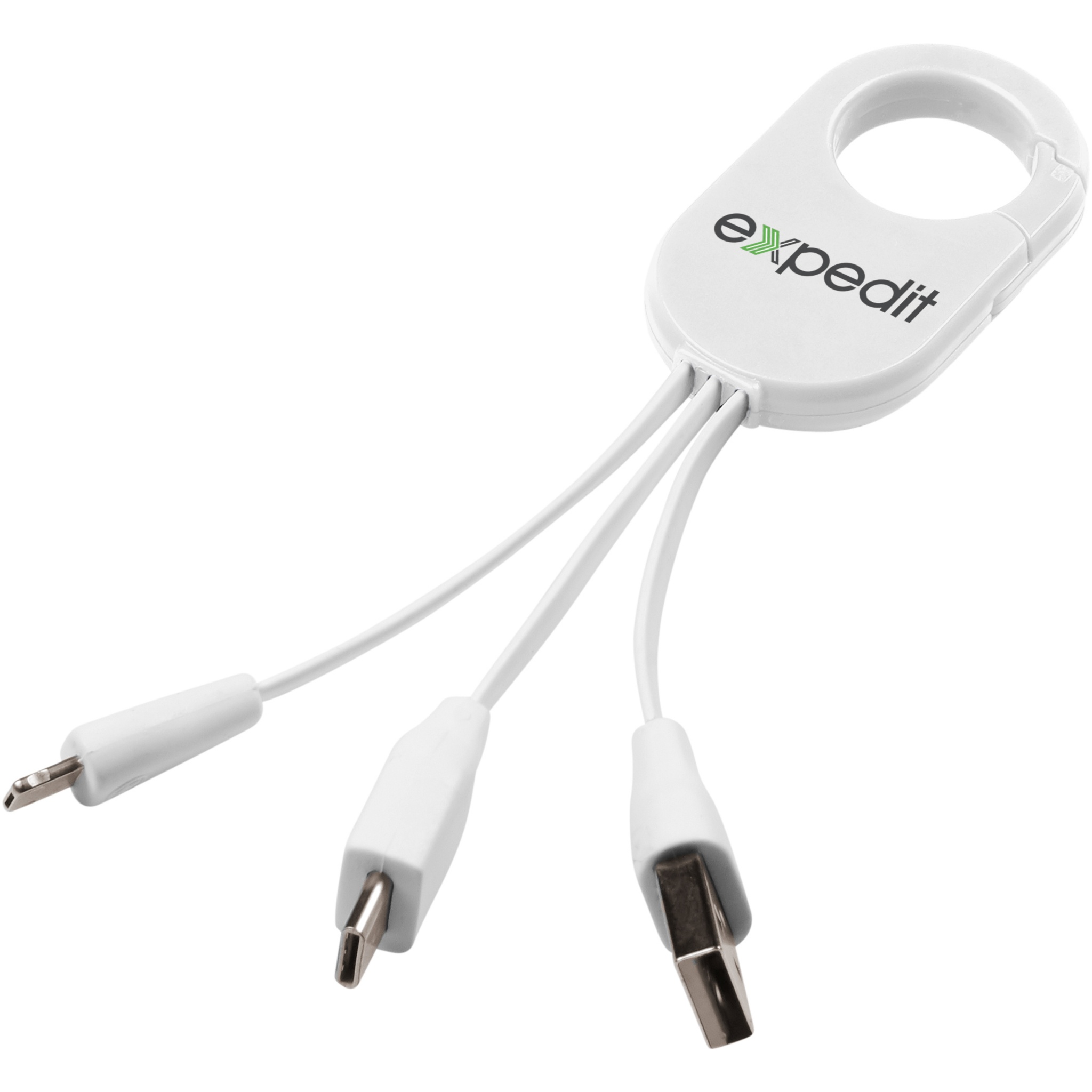 „Troop 3-in-1“ įkrovimo laidas turi C tipo USB antgalį ir „2-in-1“ suderinamą antgalį, skirtą „Apple® iOS“ ir „Android“ įrenginiams. Jame yra karabino segtukas, kad būtų galima lengvai užsikabinti ant krepšio.